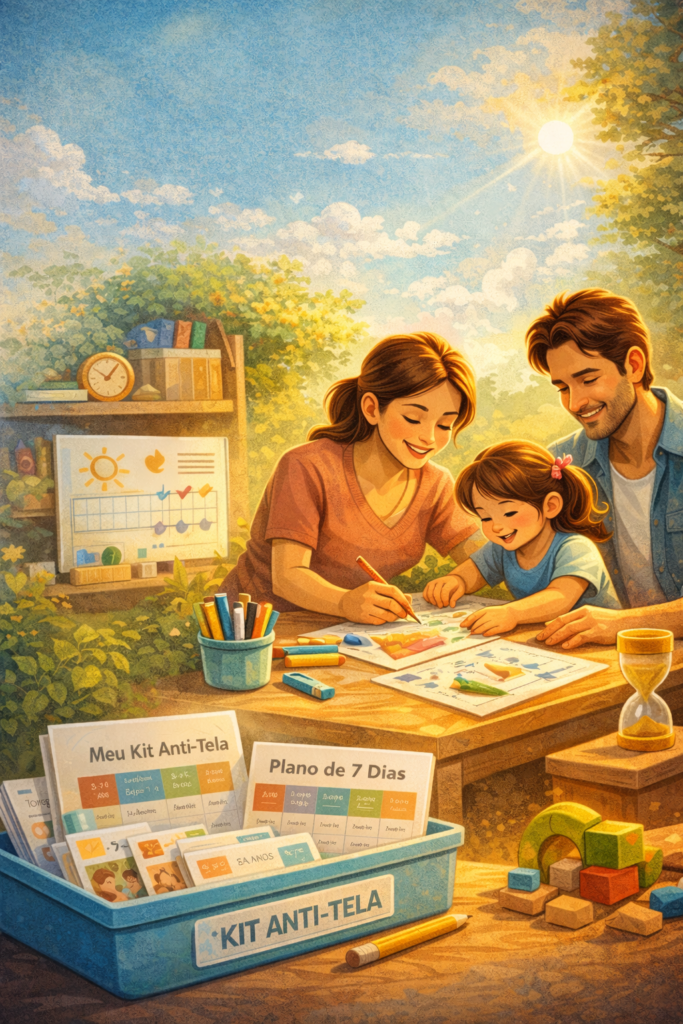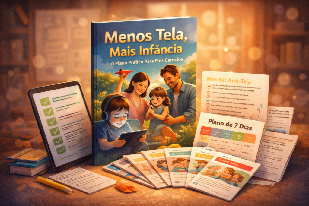 Um plano prático e possível para pais cansados reduzirem o uso de telas sem brigas, sem culpa e sem virar animador infantil — mesmo nos dias difíceis.